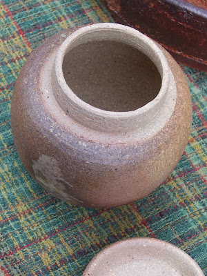 You can see on pictures here a small teapot which I got as a present during my last year Korean trip. I like its small size and simplicity. It is probably piece from big series but the quality of the clay is quite nice. There was interesting discussion on The Listening to Leaves blog related to this kind of the teapots. The ball filter is not perfect here, probably too complicated for such small piece and for pressed teas. But it is not such big deal and I like to use it.