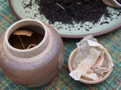 Many young shengs I have fit to two categories for me- First it is "good for drink it now" or it is too wild, too sharp to be enjoyed without aging. Here it is something between- One year after pressing it isn't "an easy-tea to drink". It is strong, with very complicated taste. There is also bitterness of wormwood. This bitterness and young power don't forestall to me to enjoy it, it is not overwhelming. But for sure, ten years in one of my puer jars will show us more. Maybe the friend who didn't like it will also change his opinion then. Maybe he is going to regret that he didn't buy few of those small cakes as I did. And I will have an opportunity to invite him for cup of the tea.